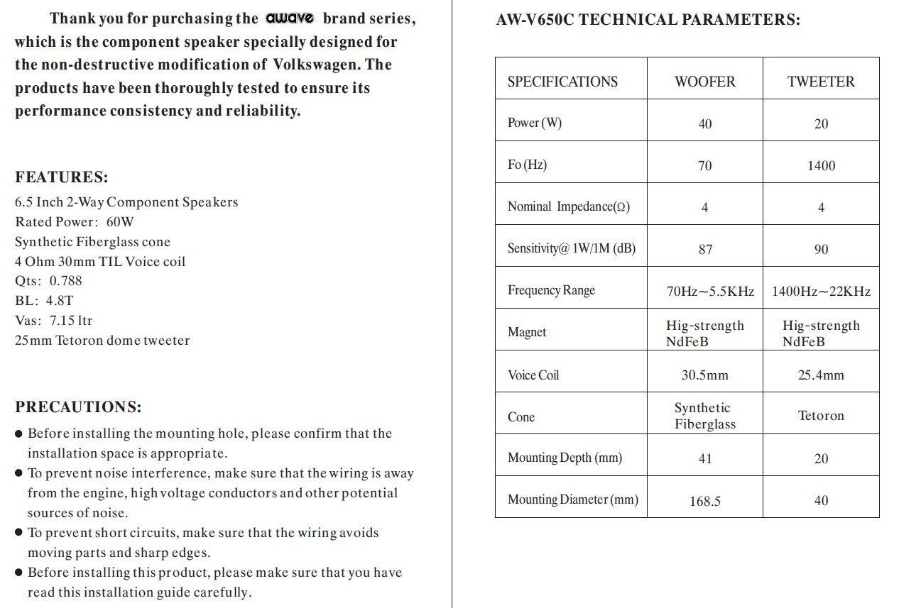 - Alle Angaben ohne Gewähr!AWV650C 165mm 2-Way Kompo System